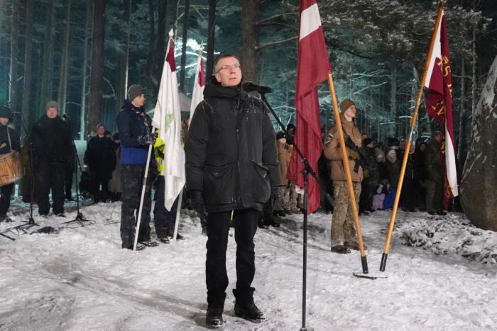 «Какими бы ни были испытания в нашей жизни, они не идут в сравнение с тем, через что прошли стрелки на Пулемётной горке, Терельских болотах, на Острове смерти (укрепления на левом берегу Даугавы напротив Ишкеле, где латышские стрелки держали оборону в 1916-1917 годах, получившем название «Остров смерти»), а также в битвах за независимость. В эти моменты мы черпаем силу и уверенность в себе, своём будущем и будущем нашей страны», – подчеркнул президент.