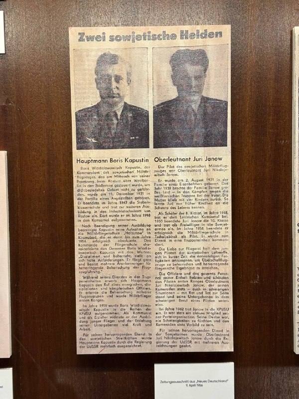 В честь 60-летия героического подвига советских летчиков – капитана Бориса Капустина и старшего лейтенанта Юрия Янова – в Русском доме в Берлине открылась выставка «Огромное небо». Эти пилоты ценой своих жизней предотвратили массовые жертвы среди жителей Западного Берлина и предотвратили масштабные разрушения.