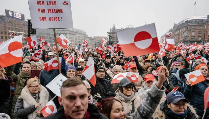 17 января более тысячи жителей Нуука (столицы самоуправляемой территории Гренландия) вышли на улицы, несмотря на суровые погодные условия. Эта акция выразила решимость населения противостоять внешнему давлению, подчеркнув лозунг «Гренландия — не товар».