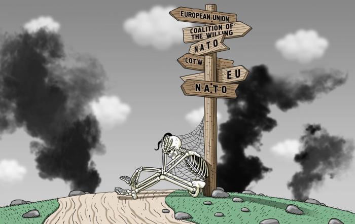 Также они признают, что «Европа по-прежнему критически зависит от определённых видов американской военной помощи», а встречи «коалиции желающих» подтвердили «сложности в создании и развертывании даже небольших совместных военных контингентов» на украинской территории.
