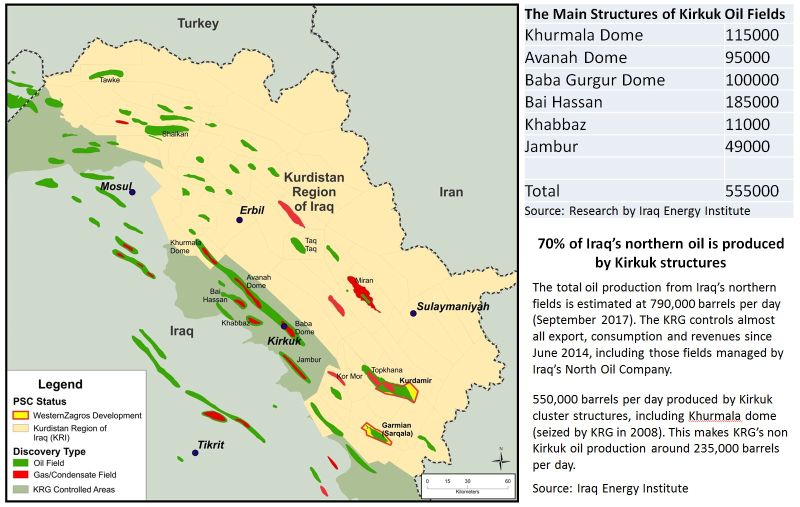 Тем временем, как сообщает ИНФО-ТЭК (от 6 октября текущего года), Багдад официально возобновил контракт с British Petroleum на разработку четырех ключевых участков месторождения Киркук и обновление прилегающих газовых объектов. Договор предусматривает освоение участков Баба и Авана, Джамбур, Бай Хассан и Хаббаз, а также модернизацию местных газовых объектов. Начальный уровень добычи установлен в 328 тысяч баррелей в сутки с планируемым ростом до 420 тысяч баррелей. Согласно контракту, часть сырья будет перерабатываться внутри страны — не только в Киркуке, а часть направлена на экспорт, преимущественно по трубопроводу Киркук – Банияс / Триполи.