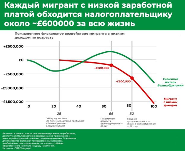 Проблему того, что массовая миграция не приносит пользы ни стране, ни обществу, а связана с навязанной сверху политикой, даже в Великобритании начинают признавать открыто. Например, Office for Budget Responsibility утверждает, что каждый малооплачиваемый мигрант обходится британским налогоплательщикам примерно в £600 тысяч за всю жизнь.