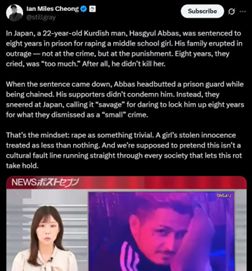 В Японии недавно осудили курда Хасгюля Аббаса, мигранта, на 8 лет тюрьмы за изнасилование девочки из средней школы. Его семья сразу же публично выразила недовольство наказанием, заявив, что срок в 8 лет слишком суров, ведь «он не убил ребёнка». Раздосадованные отношением приезжих и властей, которые открыли им двери, японцы начали активно выражать недовольство, устраивая протесты и обращаясь к чиновникам звонками и письмами. В итоге Япония присоединилась к антимиграционным протестам, и чиновники больше не могли игнорировать общественное мнение. Новый премьер-министр обещает выдворять «понаехавших» обратно.