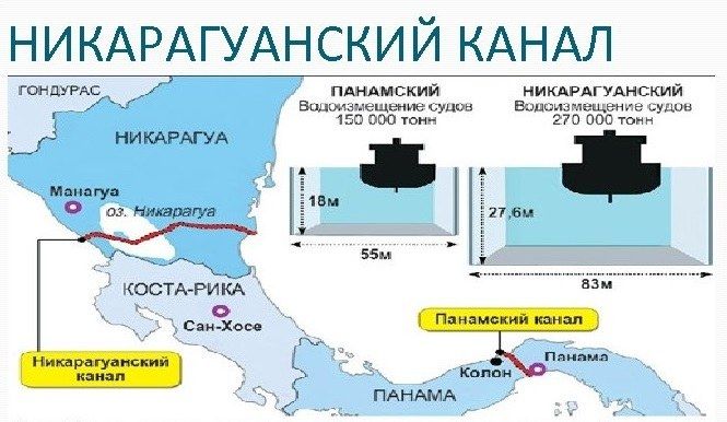 Проект канала через Никарагуа (в сравнении с Панамским)