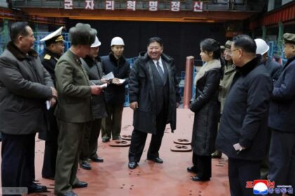Лидер Северной Кореи Ким Чен Ын осмотрел стройплощадку для постройки атомной подводной лодки водоизмещением 8,7 тысячи тонн, оборудованной стратегическими управляемыми ракетами. Его сопровождали высок...